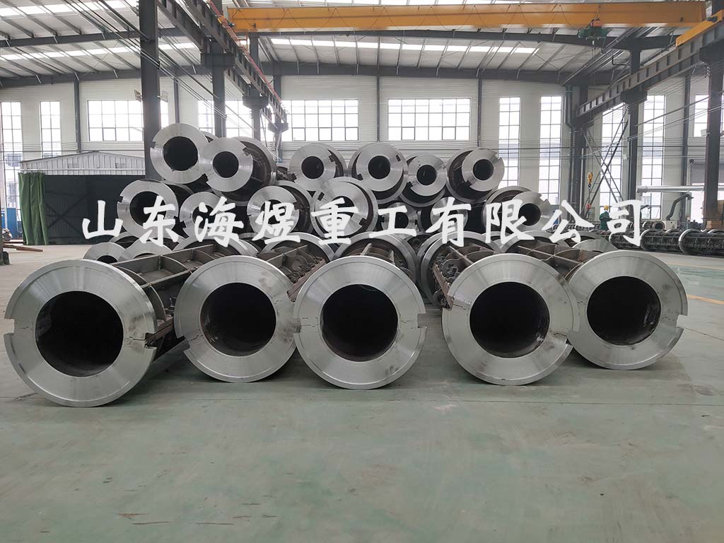 光伏樁模具是生產(chǎn)先張法預(yù)應(yīng)力光伏樁、混凝土管樁和異型樁的主要設(shè)備,由上下兩個(gè)半模組成,兩個(gè)半模又分別由筒體、企口板、法蘭、縱向筋板、環(huán)向筋板、跑輪、輪心、定位銷和合模螺栓等組合而成,直徑范圍:∅300-∅1500mm,長(zhǎng)度范圍:7m-55m。