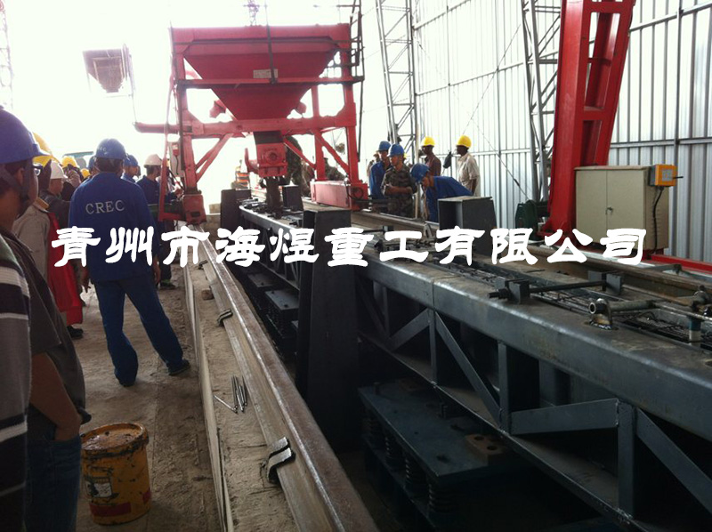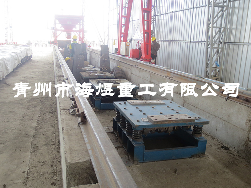 接觸網(wǎng)支柱振動臺取消了臺架,彈簧與激振器組成支柱,支柱上裝有卡模裝置,模底有相同振幅的振源,克服了模底各點振幅差大的缺點,重量輕,降低了動力消耗;炷帘砻娌晃諝,振動橫向(水平)傳遞,氣泡易排出,制成的混凝土構(gòu)件質(zhì)量好。