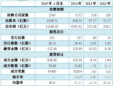 “互聯(lián)網(wǎng)+”的概念帶動了傳統(tǒng)制造業(yè)現(xiàn)代化發(fā)展步伐,線下管理、業(yè)務(wù)交易通過線上來實現(xiàn),通過資本運作使企業(yè)實現(xiàn)財富增值,成為企業(yè)熱衷的現(xiàn)代化發(fā)展工具。從2014年10月底至今資本市場表現(xiàn)火熱,2015年以來,新三板遭遇熱捧,以較低的門檻和較寬松和優(yōu)惠的政策吸引了大批企業(yè)登陸,也吸引了大量的投資者。截止到2015年4月底,新三板上市企業(yè)達(dá)到2343家,較2014年底增加771家;總股本達(dá)到1058.51億股,幾乎較2014年底實現(xiàn)翻倍增長。