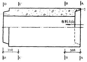 2. 當水泥制管機達到布料規(guī)定的轉速后,用喂料機在B-B截面上先布置一個寬度約為200mm的混凝土拌合物料帶。料帶厚度達到管子壁厚時,再用喂料機沿B-B截面向A-A截面均速喂料,直至到達A-A截面。料層厚度控制在比水泥管模具兩端環(huán)高出3-4mm為宜。這樣,由于B-B截面處料帶的擠壓作用和輥壓作用,易使外包口的混凝土得到密實。